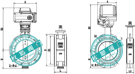 對夾式電動蝶閥D971X外形尺寸: